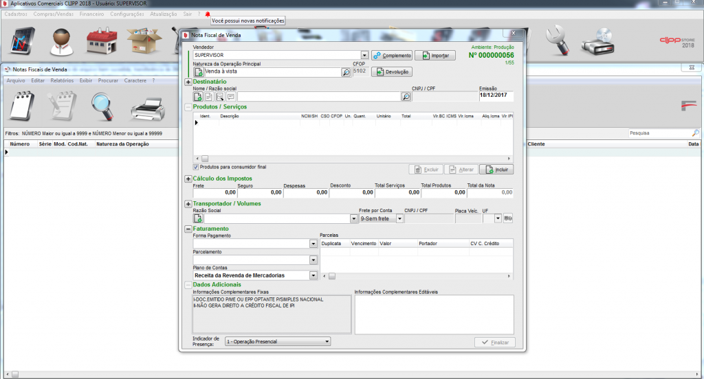 O módulo Nota Fiscal de Venda é usado para efetuar a emissão das notas fiscais de venda.